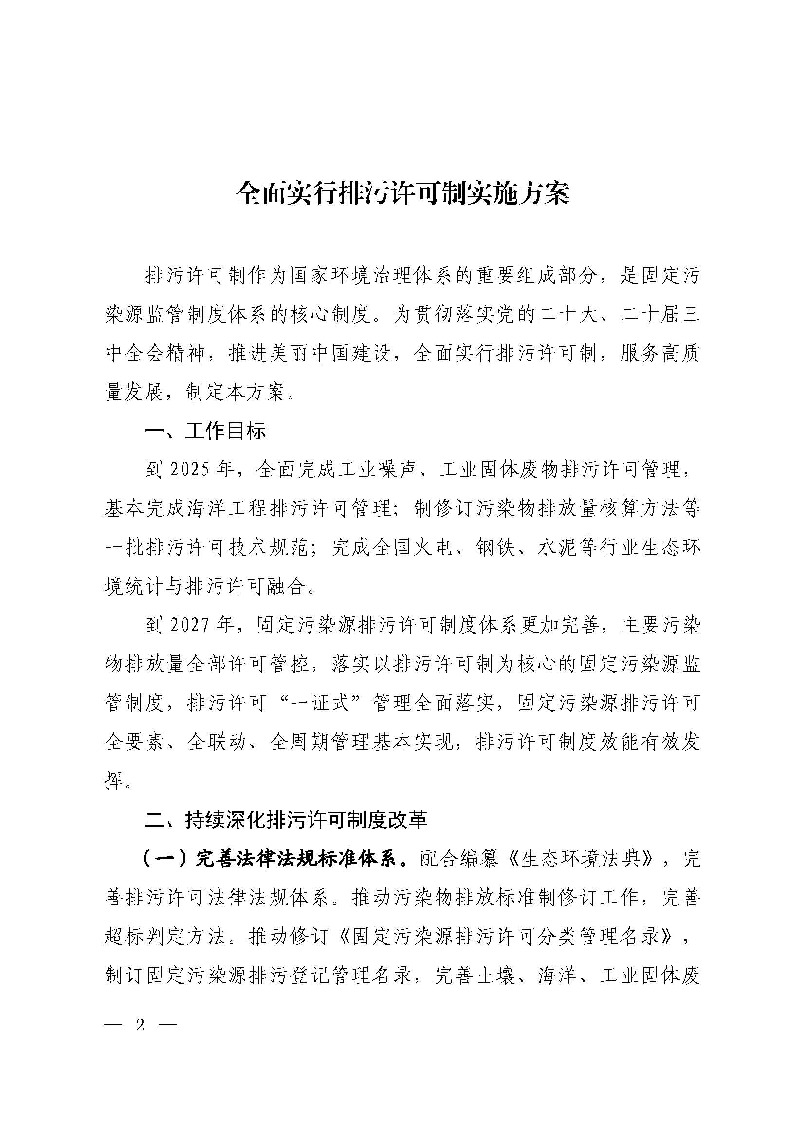 為貫徹落實黨的二十大、二十屆三中全會精神,推進美麗中國建設,全面實行排污許可制,我部組織制定了《全面實行排污許可制實施方案》。現印發給你們,請抓好落實。