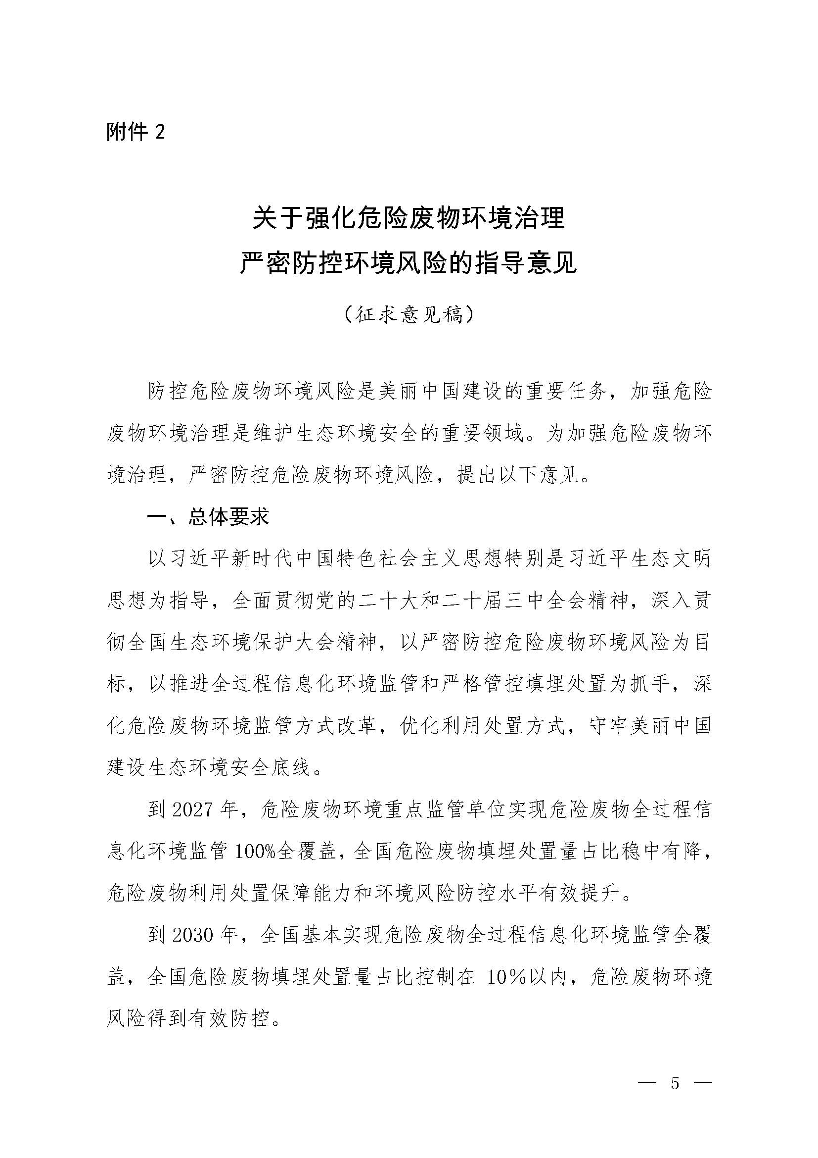 為貫徹落實《中華人民共和國固體廢物污染環境防治法》,深化危險廢物環境監管方式改革,優化利用處置方式,嚴密防控危險廢物環境風險,我部組織編制了《關于強化危險廢物環境治理 嚴密防控環境風險的指導意見(征求意見稿)》,現公開征求意見(征求意見稿及編制說明可登錄生態環境部網站http://www.mee.gov.cn/“意見征集”欄目檢索查閱)。