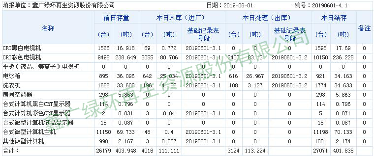 2019.06.01回收拆解統(tǒng)計(jì)表